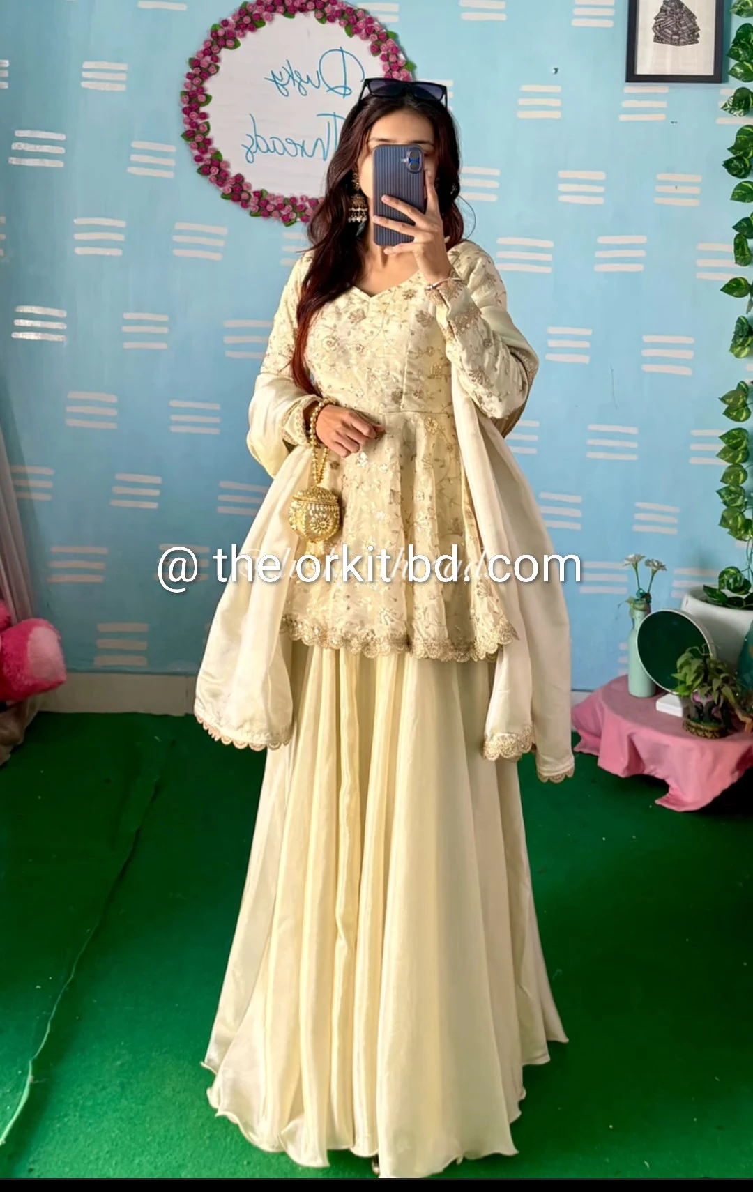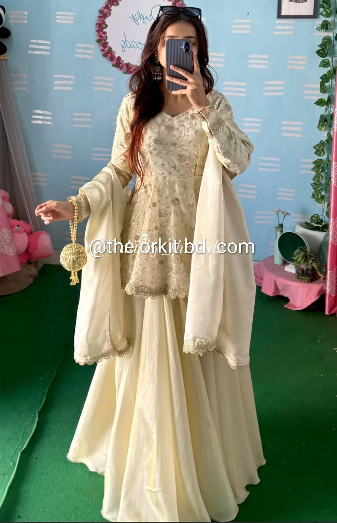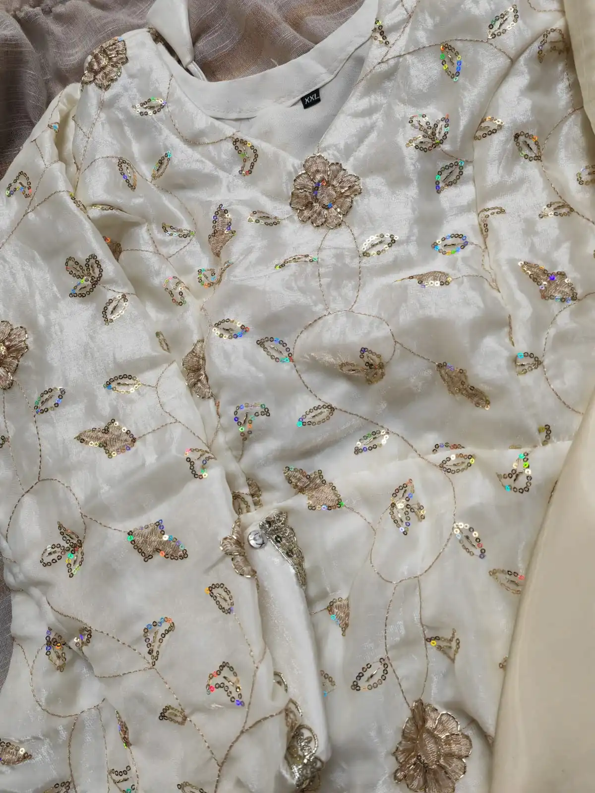 এক্সক্লুসিভ ফ্যান্সি জর্জেট কাপড়ে করা নরম ও ঝলমলে সিকুইন কাজ কুর্তিটিকে দিয়েছে চোখে পড়ার মতো সুন্দর লুক।
